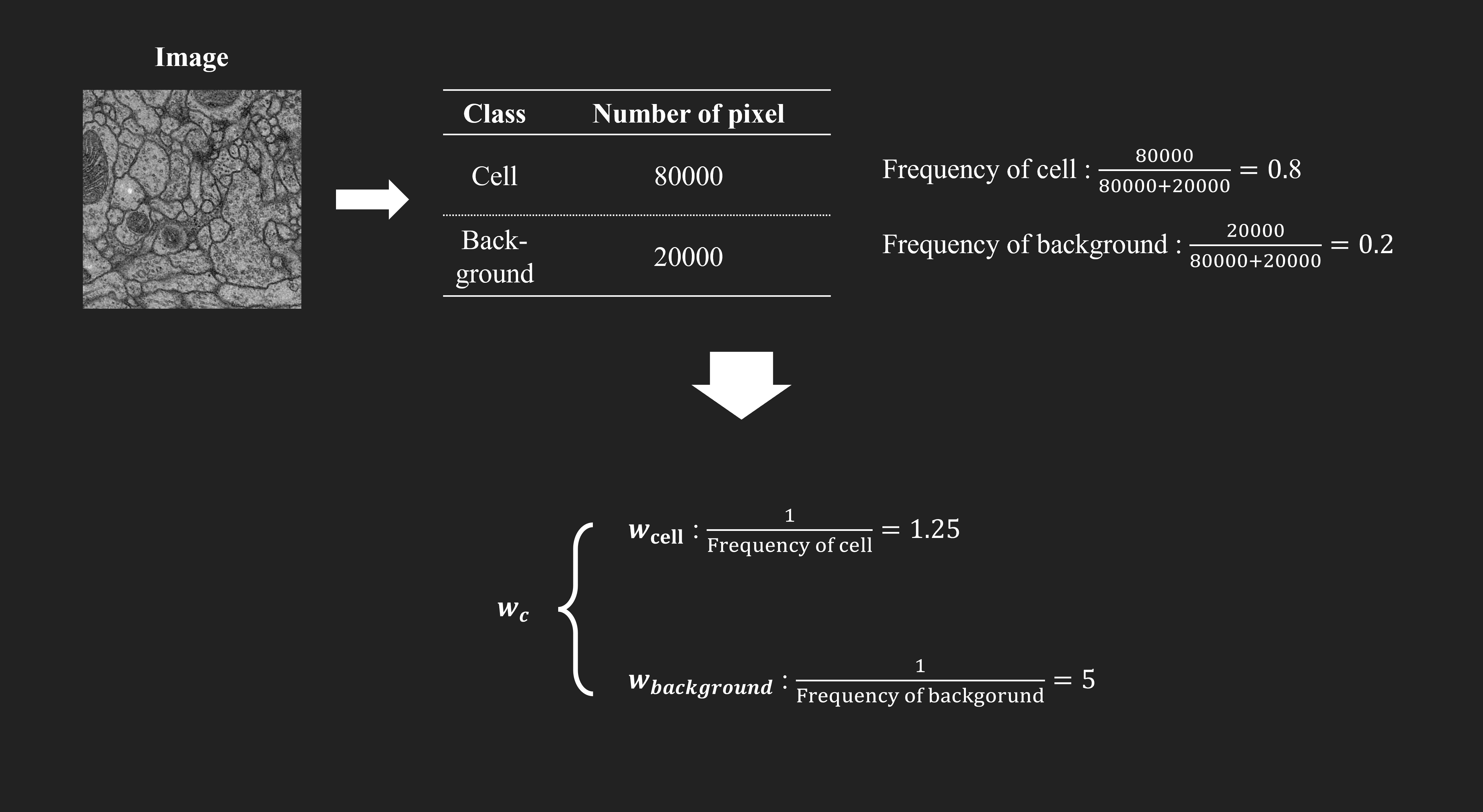 아마 데이터셋에서 세포로 정의된 pixel과 아닌 pixel의 수가 크게 차이가 나기 때문에 class imbalance를 해결할 필요가