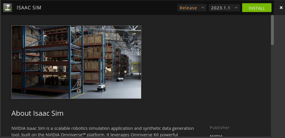 기본적으로 가장 최신버전으로 옵션이 올라가 있지만, 저기 2023.1.1을 누르면 이전 버전의 isacc sim도 다운받을 수 있다.